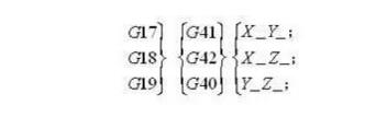 (2)使用刀具半徑補(bǔ)償時必須選擇工作平面(G17、G18、G19),如選用工作平面G17指令,當(dāng)執(zhí)行G17指令后,刀具半徑補(bǔ)償僅影響X、Y軸移動,而對Z軸沒有作用。