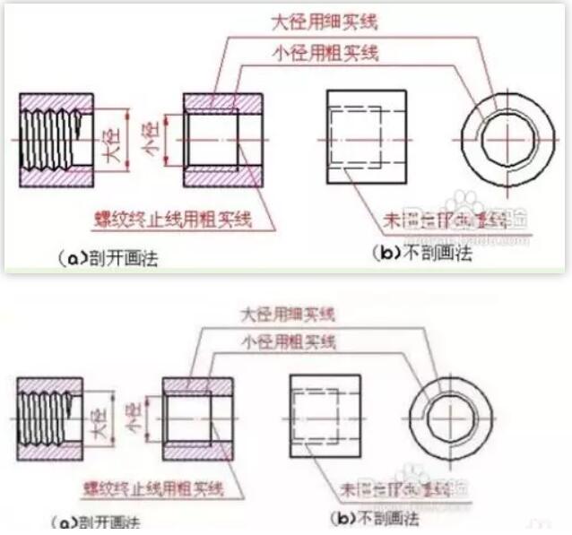 螺紋種類有很多種,畫法也有不少,新手朋友有些混淆,下面對螺紋畫法做一個總結(jié)。
