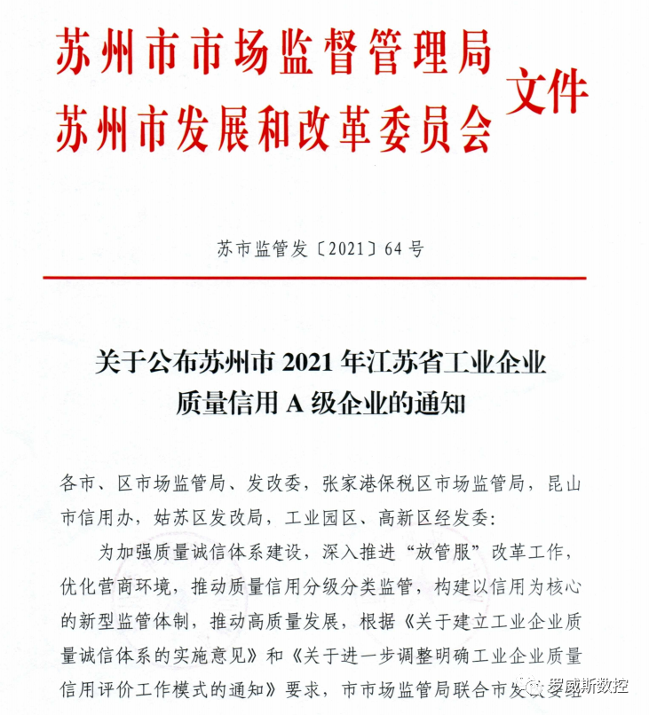 近日,江蘇省市場監(jiān)管管理局和江蘇省發(fā)展和改革委員會發(fā)布的《關于公布2021年度江蘇省工業(yè)企業(yè)質量信用A級企業(yè)名單的通知》中蘇州昆山市共有28家企業(yè)在全省質量信用等級評價中獲得A級。